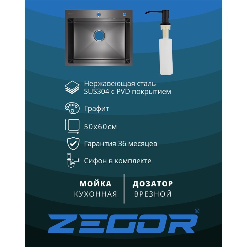 ML-6050MG Набор 3 в 1( Мойка, сифон, дозатор) из нержавеющей стали, цвет Графит