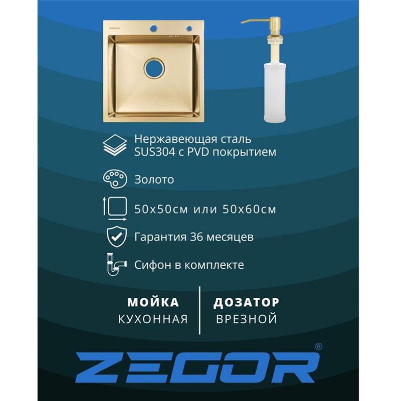 ML-5050KG Набор 3 в 1( Мойка, сифон, дозатор) из нержавеющей стали, цвет Золото