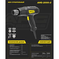 Фен строительный сетевой BifAces AHG-2000-2 Напряжение 220В, Мощность 2000Вт