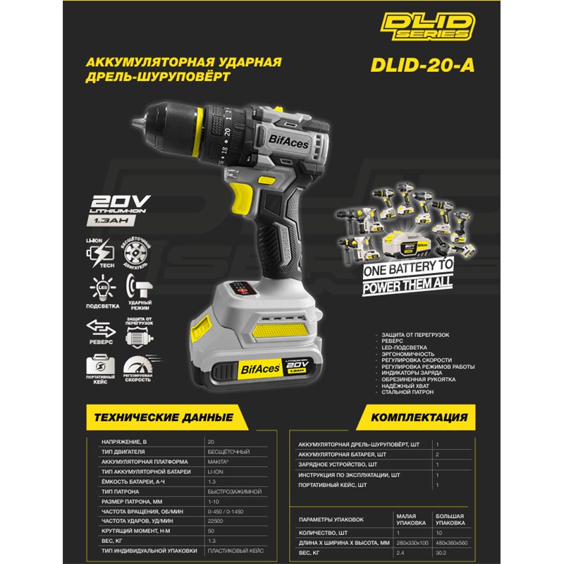 DLID-20-A Аккумуляторная ударная дрель-шуруповёрт марки BifAces