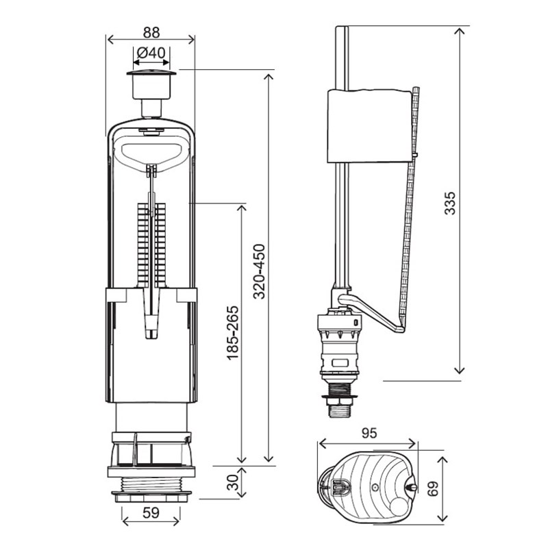 Z-PRO 4774 Компл арматуры сливной клапан двойного смыва, наполнит клапан нижней подвод (18)