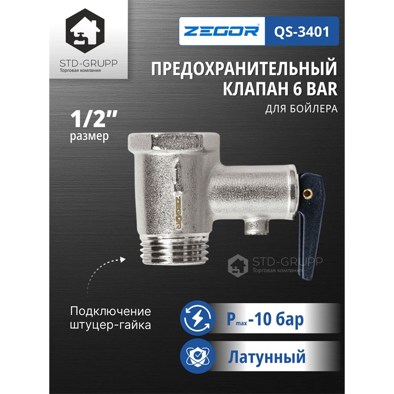 6090293401: QS-3401, Предохр.клапан бойлера с флажком для прин.сброса воды латунь(СW617N) 1/2"*1/2"НВ 6Бар (210) На складе: 288 213.00 ₽