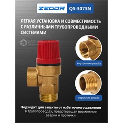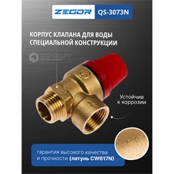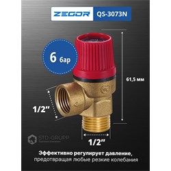 Предохранительный клапан, материал корпуса латунь (CW617N) без покрытия, диаметр подключения 1/2“х1/2“ ВН по направлению потока на корпусе, рабочее давление 1,0 бар, давление на срабатывание свыше 6 бар, максимальная рабочая температура 120 °С. 100шт/уп.