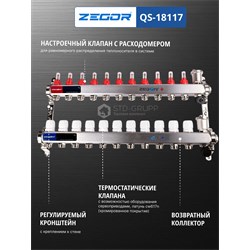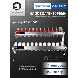 Состоит из: - 1 возвратный коллектор, нержавеющая сталь AISI 304, с отсечными клапанами под сервопри воды; - 1 подающий коллектор, нержавеющая сталь AISI 304, с расходомерами; - 2 цельнометаллических кронштейна. - 2 дренажных клапана с автоматическим воздухоотводчиком. Размер подключения: 1″ (внутренняя резьба); Максимальное рабочее давление: 6 бар (10 бар для испытания оборудования); Максимальная рабочая температура: 70 °С (95 °С для испытания оборудования); Стандарт резьбы: ISO228; Выходы: от 2 до 12 с соединением 3/4″ Евроконус; Межосевое расстояние: 50 мм; Возможно использования термоэлектрических сервоприводов или аналогов с резьбой МЗ0х1,5; Сальниковое кольцо - резина EPDM; Коллекторный блок ремонтопригоден и имеет 5000 циклов наработки на отказ
