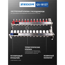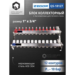 Состоит из: - 1 возвратный коллектор, нержавеющая сталь AISI 304, с отсечными клапанами под сервопри воды; - 1 подающий коллектор, нержавеющая сталь AISI 304, с расходомерами; - 2 цельнометаллических кронштейна. - 2 дренажных клапана с автоматическим воздухоотводчиком. Размер подключения: 1″ (внутренняя резьба); Максимальное рабочее давление: 6 бар (10 бар для испытания оборудования); Максимальная рабочая температура: 70 °С (95 °С для испытания оборудования); Стандарт резьбы: ISO228; Выходы: от 2 до 12 с соединением 3/4″ Евроконус; Межосевое расстояние: 50 мм; Возможно использования термоэлектрических сервоприводов или аналогов с резьбой МЗ0х1,5; Сальниковое кольцо - резина EPDM; Коллекторный блок ремонтопригоден и имеет 5000 циклов наработки на отказ