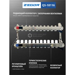 Коллекторный блок серии QS из нержавеющей сталли (AISI304)с настроечными и термостатическими клапанамис регулировочными ручками.