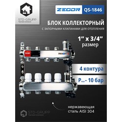 Коллекторный блок серии QS из нержавеющей сталли (AISI304)с настроечными и термостатическими клапанамис регулировочными ручками.