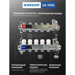 Коллекторный блок серии QS из нержавеющей сталли (AISI304)с настроечными и термостатическими клапанамис регулировочными ручками.