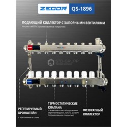 Коллекторный блок серии QS из нержавеющей сталли (AISI304)с настроечными и термостатическими клапанамис регулировочными ручками.