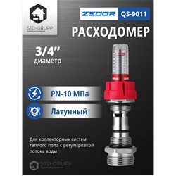 Расходомер для коллектров тёплого пола с регулировкой протока. 72шт/уп.