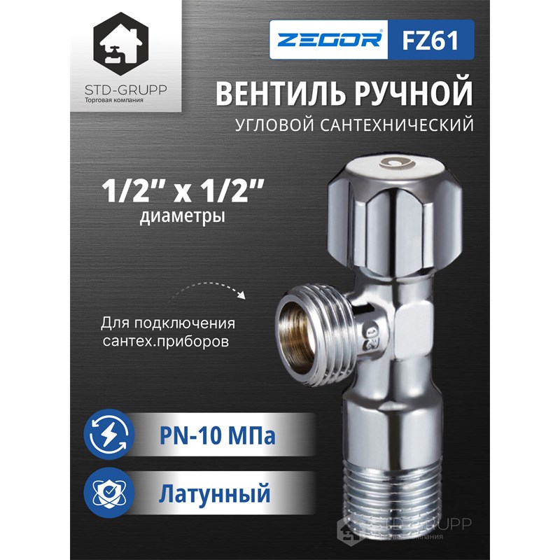 602021320171: FZ61, Кран вентильный для подключения сантех.приборов 1/2"*1/2"(80)