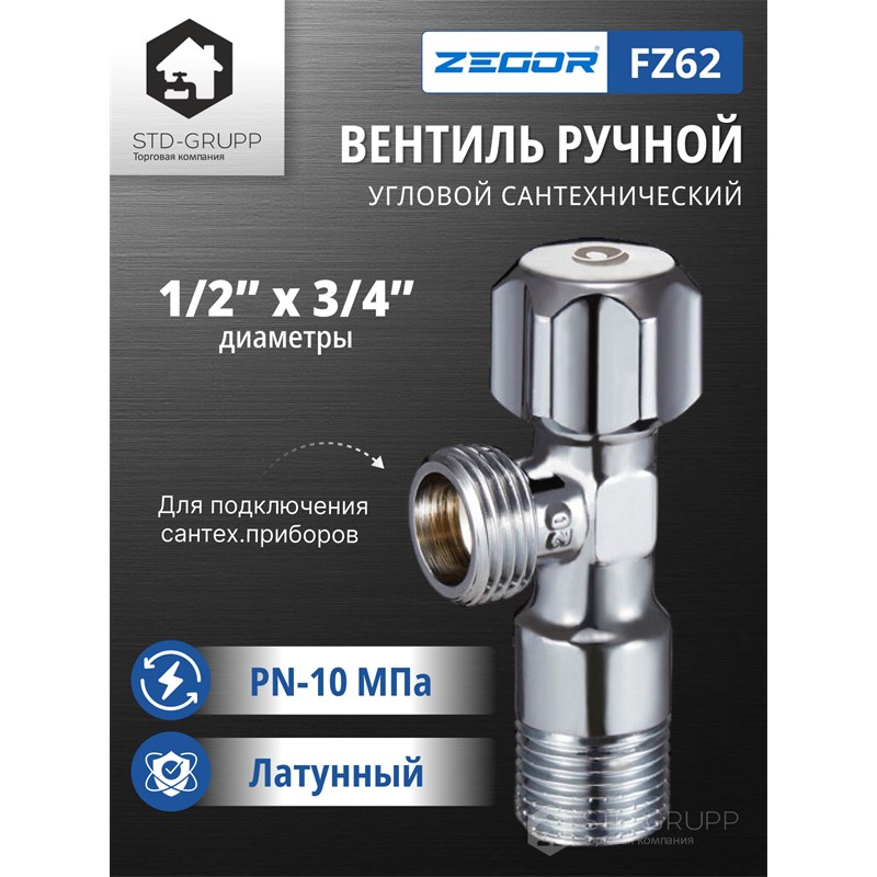 602021320721: FZ72, Кран вентильный для подключения сантех.приборов 1/2"*3/4" (100шт)