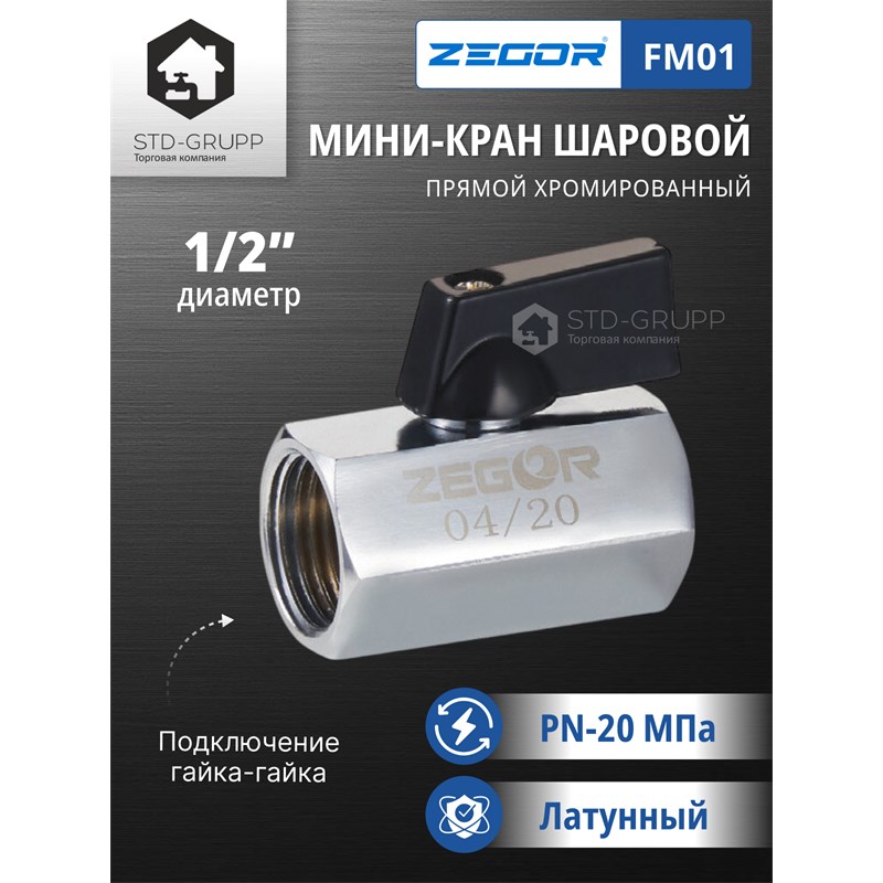 601022150501: FBR16, Кран шаровый латунный (CW617N) 2" полнопроходной, ручка гайка/гайка (РГГ) (12)