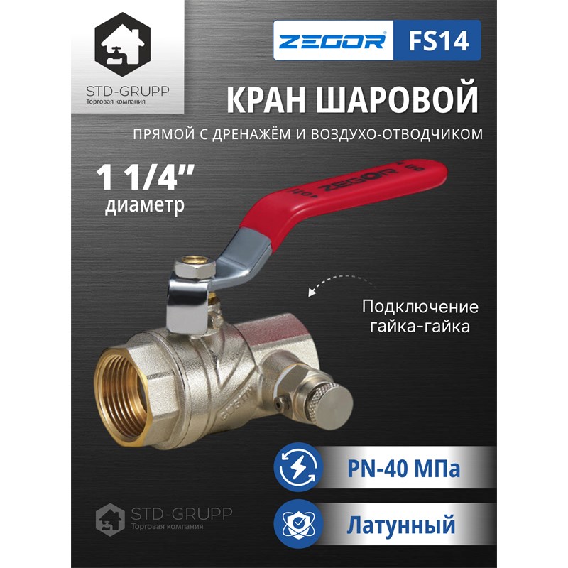 601024120201: FS12,Кран шар/латун (CW617N)3/4 полнопрох.с дренажем и воздухоотводчиком ручка гайка/гайка (РГГ)(60)