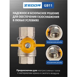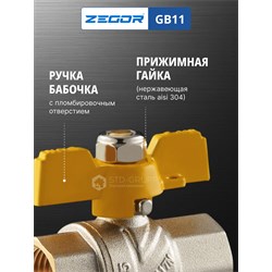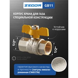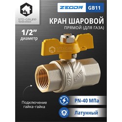 Кран шаровой латунный для газа 1/2" (CW617N) полно проходной ручка бабочка подключение гайка-гайка (БГГ). 20/120шт/уп.
