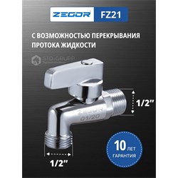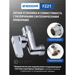 Кран угловой шаровой 1/2"х1/2" для подключения сантехнических приборов латунный (CW617N) хромированный. 60шт/уп.