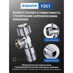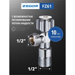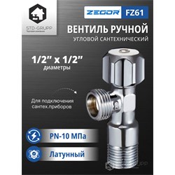 Кран приборный регулировочный для подключения сантехнических приборов 1/2"х1/2" латунный (CW617N) хромированный. 80шт/уп.