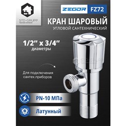 Кран приборный регулировочный для подключения сантехнических приборов 1/2"х3/4" Латунный, хромированный. 100шт/уп.