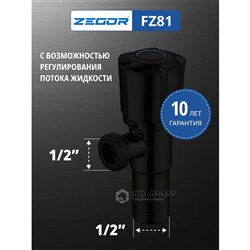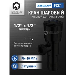 Кран приборный регулировочный для подключения сантехнических приборов 1/2"х1/2" латунный чёрный 100шт/уп