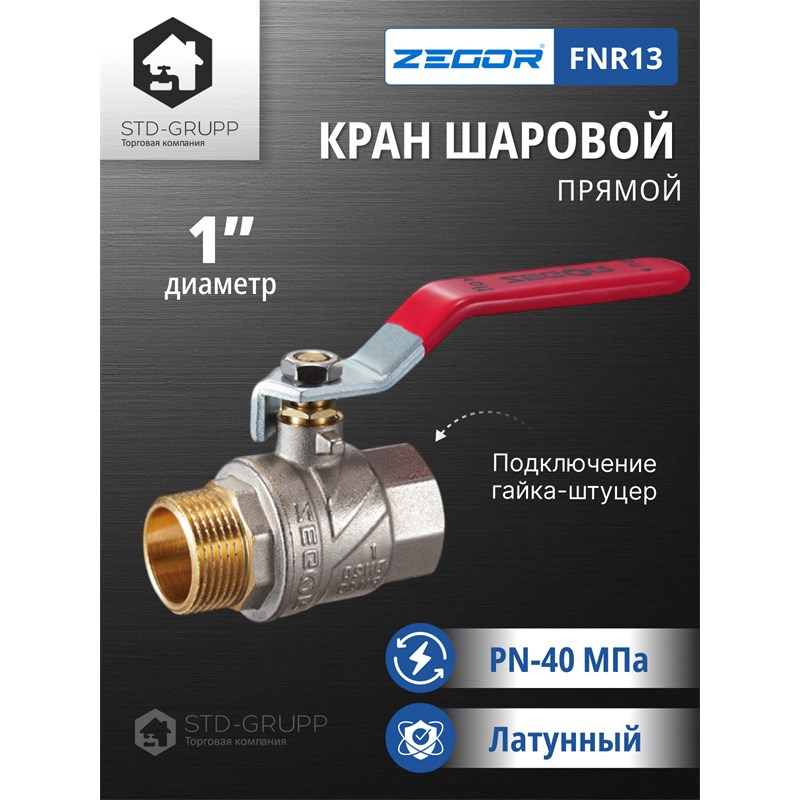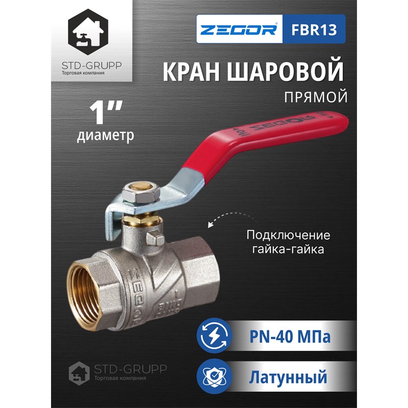 Кран-американка усиленный прямой шаровой латунный 1/2" (CW617N) полно проходной с полу сгоном и антипротечкой ручка-бабочка. 15/90шт/уп.