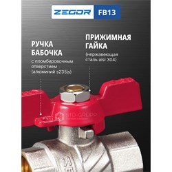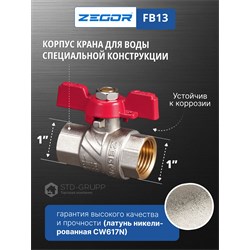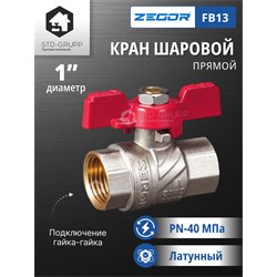 Кран шаровой латунный 1" (CW617N) полно проходной ручка бабочка подключение гайка-гайка (БГГ). 15/60шт/уп.