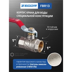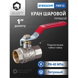 Кран шаровой латунный 1" (CW617N) полно проходной ручка подключение гайка-гайка (РГГ). 10/40шт/уп.