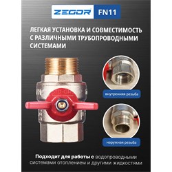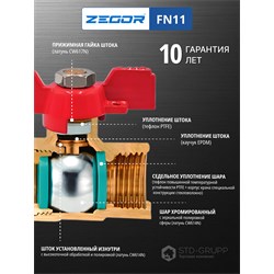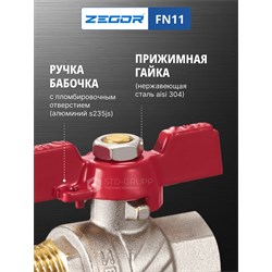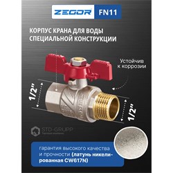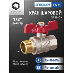 Кран шаровой латунный 1/2" (CW617N) полно проходной ручка бабочка подключение гайка-штуцер (БГШ). 120шт/уп.