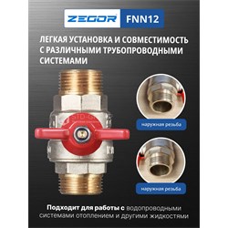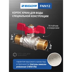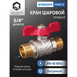 Кран шаровой латунный 3/4" (CW617N) полно проходной ручка бабочка подключение штуцер-штуцер (БШШ). 15/90шт/уп.