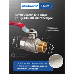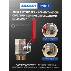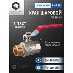 Кран шаровой латунный 1 1/2" (CW617N) полно проходной ручка подключение гайка-штуцер (РГШ). 12/24шт/уп.
