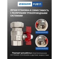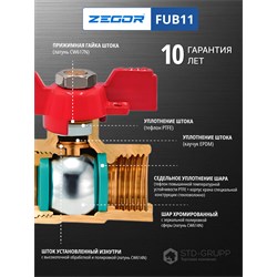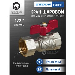Кран шаровой прямой латунный 1/2" (CW617N) полно проходной с накидной гайкой бабочка подключение гайка-гайка (БГГ). 25/150шт/уп.