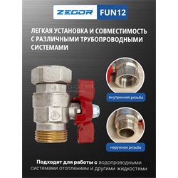 Кран шаровой прямой латунный 3/4" (CW617N) полно проходной с накидной гайкой бабочка подключение гайка-штуцер (БГШ). 20/120шт/уп.
