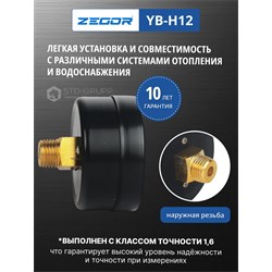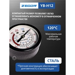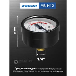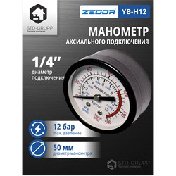 Манометр аксиальный до 12 бар, материал корпуса сталь, диаметр корпуса 50 мм, диаметр подключения резьбы 1/4", класс точности 1,6. 200шт/уп.