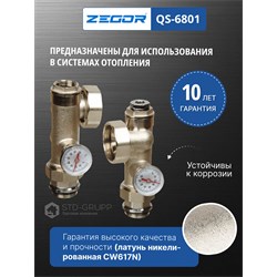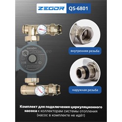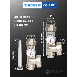 Комплект для подключения циркуляционного насоса, материал корпуса латунь (CW617N) с никелированием, диаметр подключения 1“, монтажная длина насоса 130-180 мм, максимальное рабочее давление 16 бар, максимальная рабочая температура 110 °С, резьба под сервопривод или термоголовку термостатического клапана М30 × 1,5, размер гаек циркуляционного насоса 1"1/2". 10шт/уп.