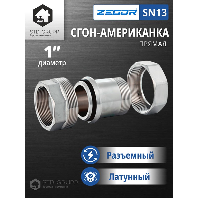 Разъёмное резьбовое соединение сгон-американка 1/2" из латуни (CW617N)/ 10/160шт/уп.