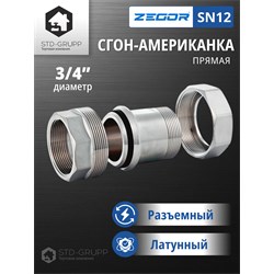 Разъёмное резьбовое соединение сгон-американка 3/4" из латуни (CW617N). 10/100шт/уп.