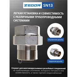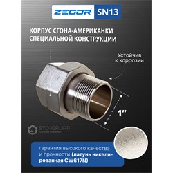 Разъёмное резьбовое соединение сгон-американка 1" из латуни (CW617N). 10/80шт/уп.