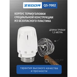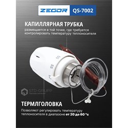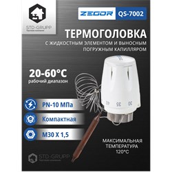 Термостатическая головка с жидкостным элементом и выносным погружным капилляром, длинна капилярной друбки 1,5 м, резьба подключения термоголовки М30 × 1,5, диапазон регулирования температуры от 6 до 28 ℃, максимальное рабочее давление 10 бар, максимальная температура теплоносителя 100 ℃. 50шт/уп.
