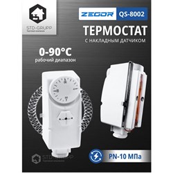 Термостат накладной с регулировкой, диапазон регулирования рабочей температуры: 0 ÷ 90°C, степень защиты IP40, сила тока контактов 16 (4) A,230В 50Гц. дифференциал 6 ± 2°C. 50шт/уп.