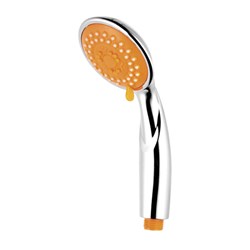 Лейка душевая 3-функциональная, режим распыление, режим распыление и брызги шампанского, режим брызги шампанского, покрытие хром+аранжевая вставка. 130шт/уп.