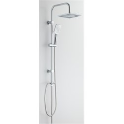 СтоДушевая система из нержавеющей стали, покрытие хром, высота стойки 960 мм, в комплект входит лейка тропическая квадратная, лейка+шланг1500мм, шланг 400мм, дивертор, два круглых хромированных крепления к стене 5шт/уп.