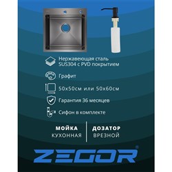 ML-5050MG Набор 3 в 1( Мойка, сифон, дозатор) из нержавеющей стали, цвет Графит (Основной склад г.Москва)