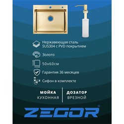 ML-6050KG Набор 3 в 1( Мойка, сифон, дозатор) из нержавеющей стали, цвет Золото (Основной склад г.Москва)
