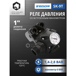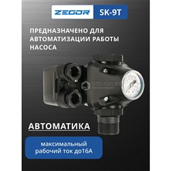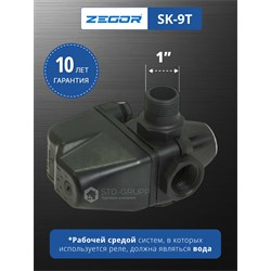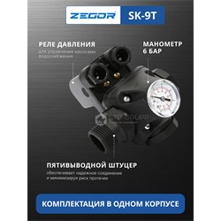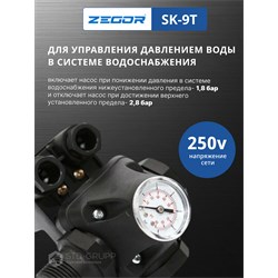 Реле давления SK-9T— предназначено для автоматического включения и выключения электрического насоса, управление включением-выключением любых однофазных (230 В) насосов.