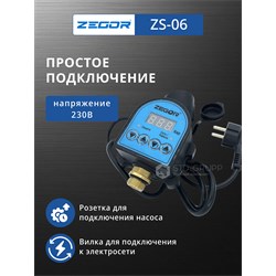 ZEGOR серии ZS-06 это современное, надежное оборудование для управления бытовыми насосами, обеспечивающее стабильную работу всей вашей системы с простым и понятным функционалом.