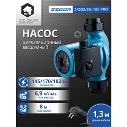 Обмотка статора: медь. Катафорезное покрытие внутри насосной камеры. Вал двигателя из изностойкой керамики. Класс изоляции Н, класс защиты IP44. Мощность P1 (Режимы 1,2,3: 145/170/182Вт), Макс.напор 8м, Макс.расход 6,9 м3/ч. Кабель 1,3м с евровилкой. Резьба подключения 1 1/4" в/в, Монтажная длина 180 мм. Гарантия: 60 месяцев.