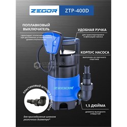 Мощность P1 400 Вт, Макс.напор 5 м, Макс.расход 7,5 м3/час, глубина погружения до 5 м.; корпус, насосная камера, рабочее колесо техполимер; обмотка статора алюминий; держатель для поплавка на корпусе; для грязной воды Гарантия: 12 месяцев.
