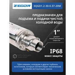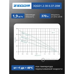 Диаметр скважины 95-110мм. ⌀ корпуса 3"(75мм), Мощность P1 370 Вт, Макс.напор 90 м, Макс.расход 1,9 м3/час, Диаметр присоединения 1", Фланец переходной из нерж. стали, Узел шнековый двухзаходная резиновая обойма и шнек с хромированым покрытием, Обмотка статора медь, Вал двигателя нерж. сталь AISI 304, Длина кабеля 20 м Гарантия: 24 месяцев.