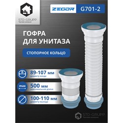 Гибкая армированная труба для унитаза, 600мм,стопорное кольцо интегрировано в корпус. 20шт/уп.