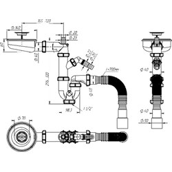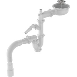 Сифон Пилот под стиральную машину с метал.решетк. 70мм с отв. с/м с гибкой трубой 40х40/50. 20шт/уп