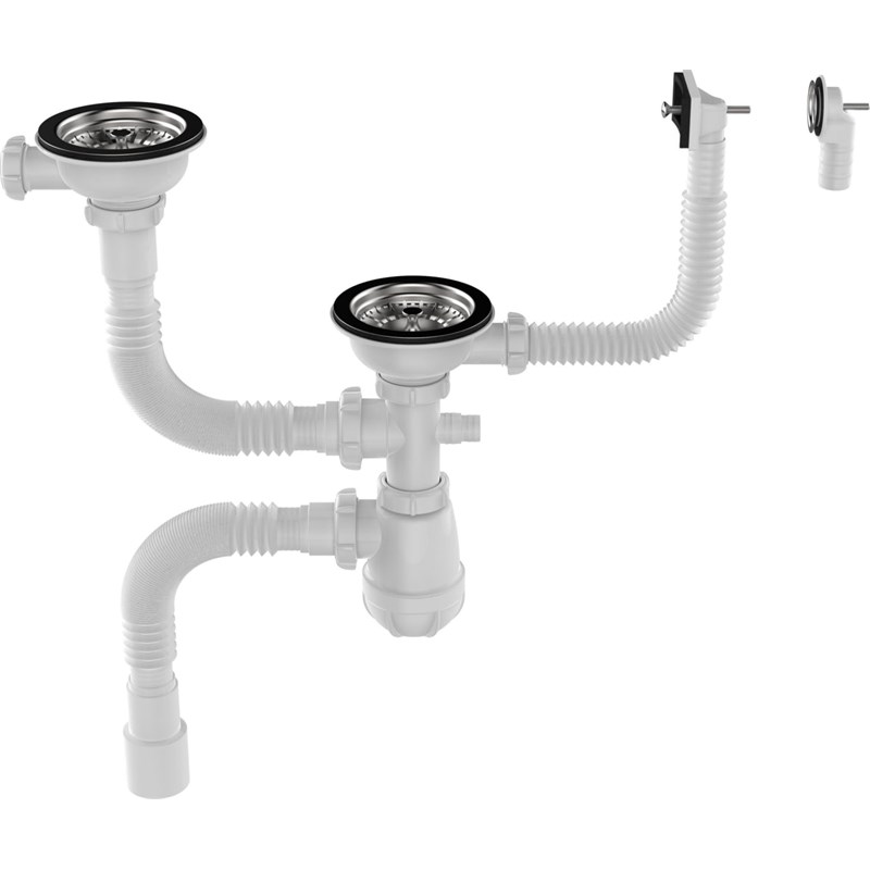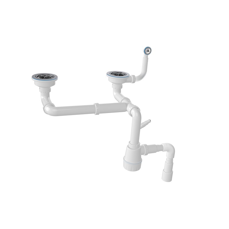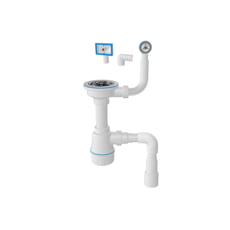 4080300396: MD119-6, Двойной разноуровневый сифон для керамической мойки с выпусками 3 1/2,с круглым переливом На складе: 22 1 245.00 ₽